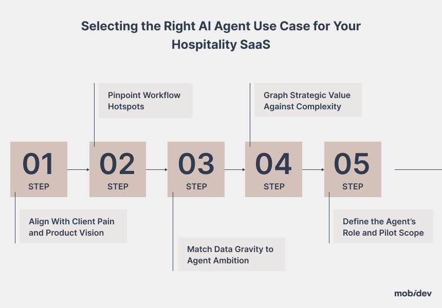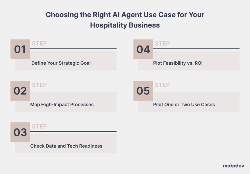 Chasing every shiny AI product demo wastes resources. Instead, apply a structured algorithm to rank feasibility against impact. The detailed CTO‑level walk‑through lives in the guide on developing AI agents for hospitality. Below is the condensed field version you can run this week.