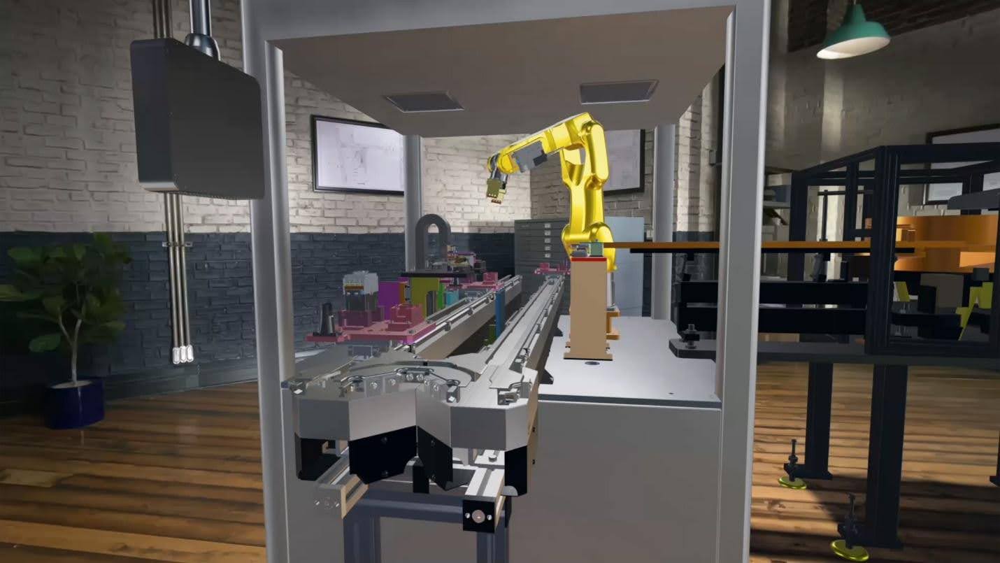 A machine in mixed reality created by PTC, demonstrating the Vision Pro’s ability to simulate complex machines in space.