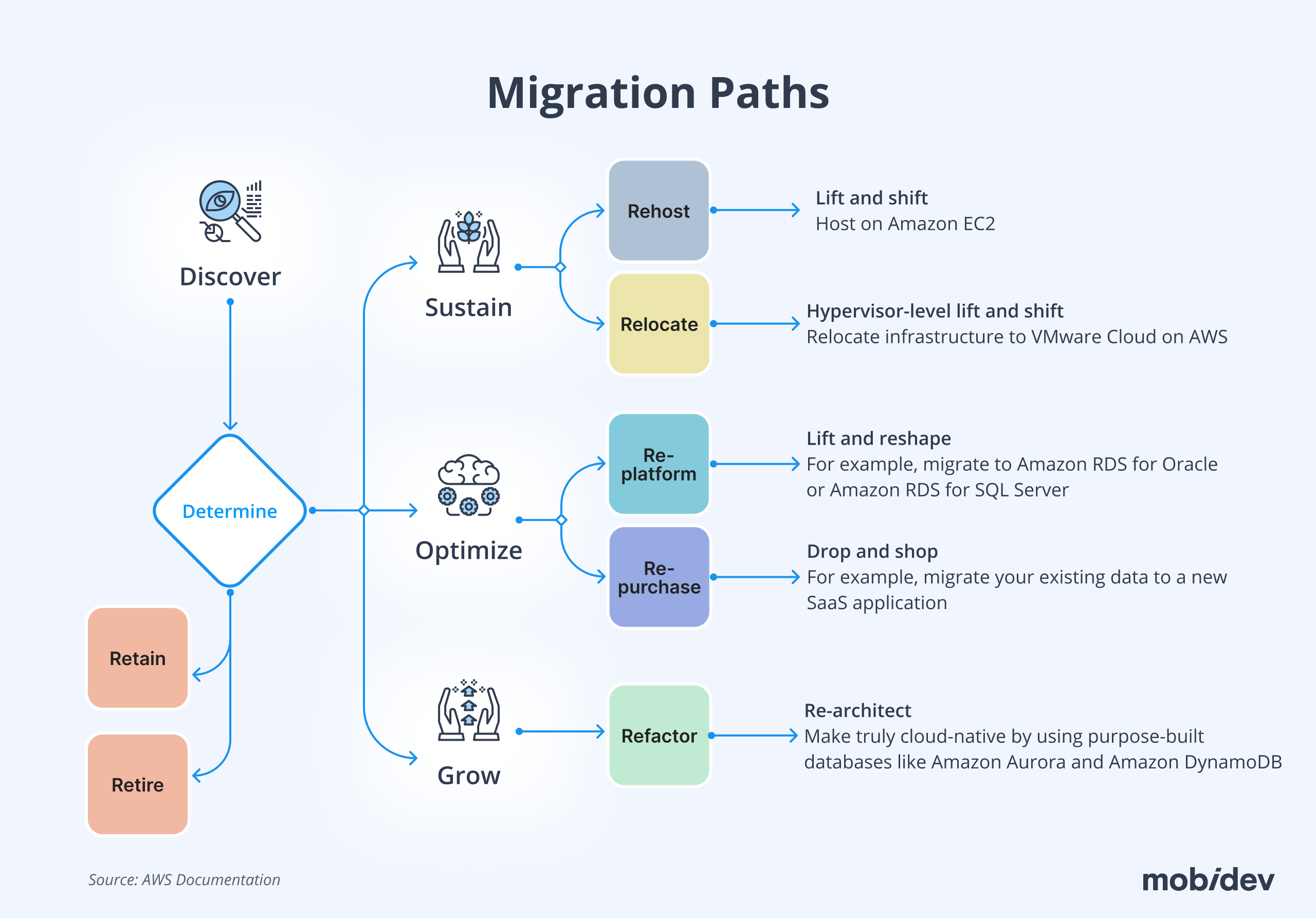 Choosing the right strategy depends on various factors, including the current state of the application, business goals, budget, and timeline. Organizations often use a hybrid approach, where some applications are simply rehosted while others are replatformed or refactored based on their strategic importance and requirements.