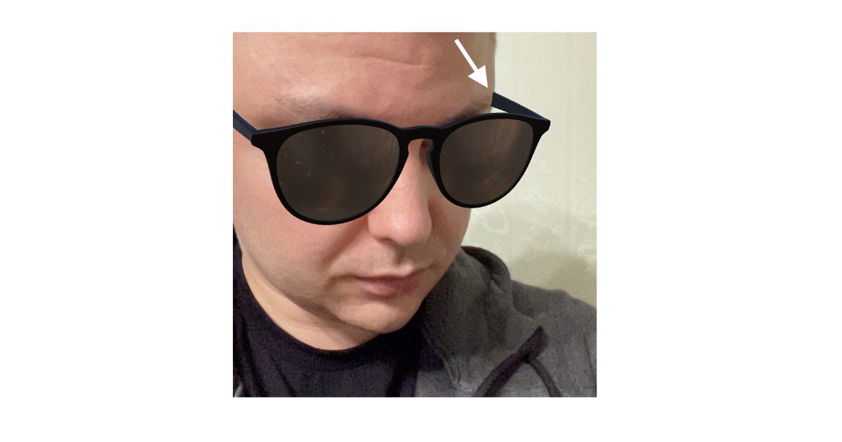 And here’s the icing on the cake: occlusion. When a user turns their head, the glasses’ temples should be covered by the face. Since AR overlays objects onto real-world video, we need to “trim” the portions of a 3D object that shouldn’t be visible. This creates the illusion that the face is covering the temple, which is the essence of occlusion.