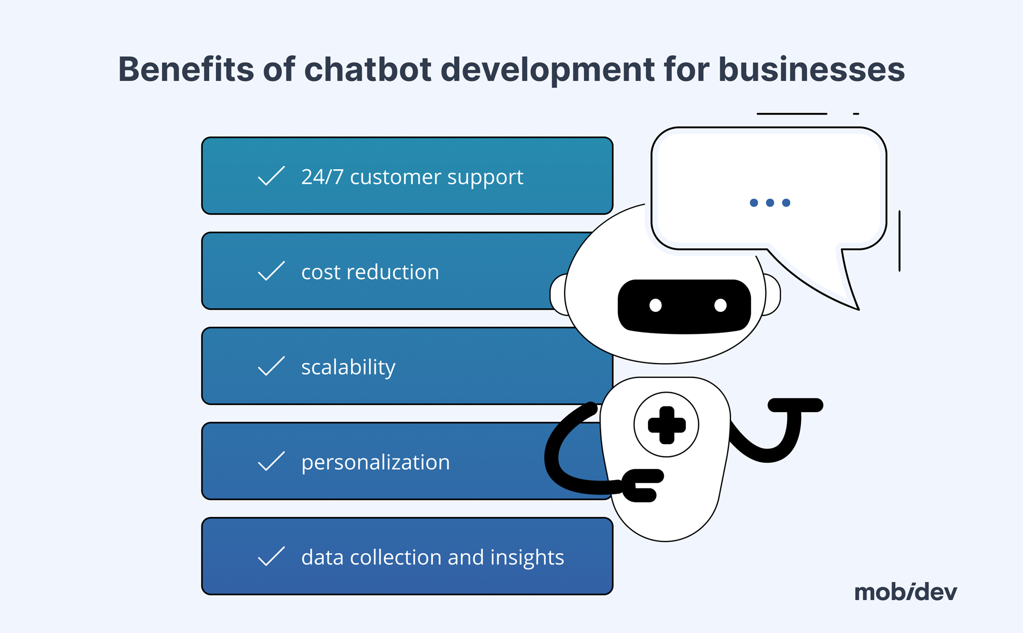 In this article, we’ll discuss technologies, challenges, and best practices for AI chatbot development based on MobiDev’s 15+ years of expertise. Also, we’ll explain what expectations B2B and B2C customers have and why the ability to move customers’ issues forward is crucial for any chatbot.