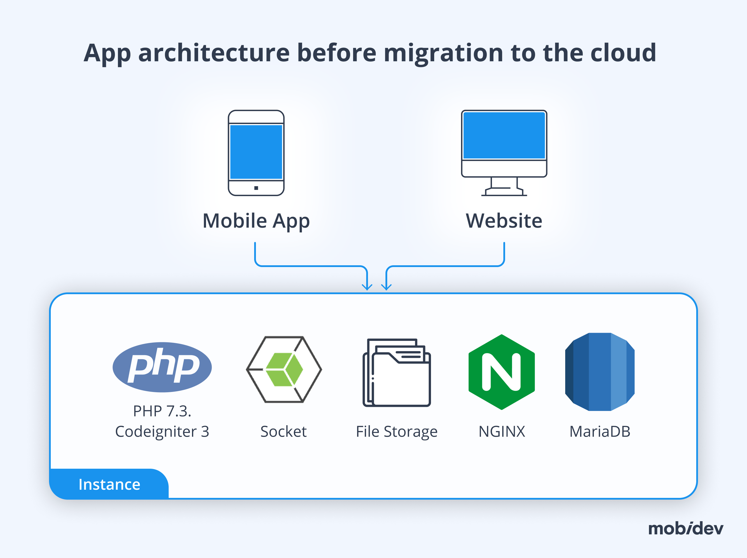 1. The old system was created as a monolithic server with a database and a folder for storing all uploaded files. Such an architecture made scaling challenging and this option worked the best for out-of-the-box CMS solutions but not for frameworks. Deploying new code to the server was challenging as it required manual intervention and could only be executed via FTP.