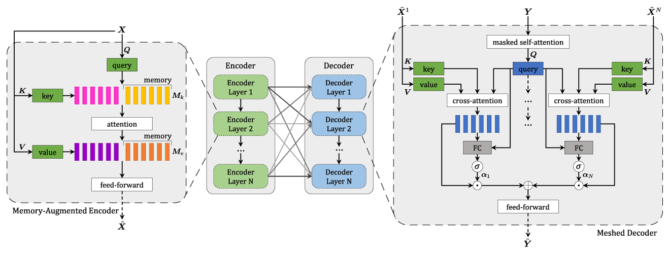 Meshed-Memory transformer model for image captioning