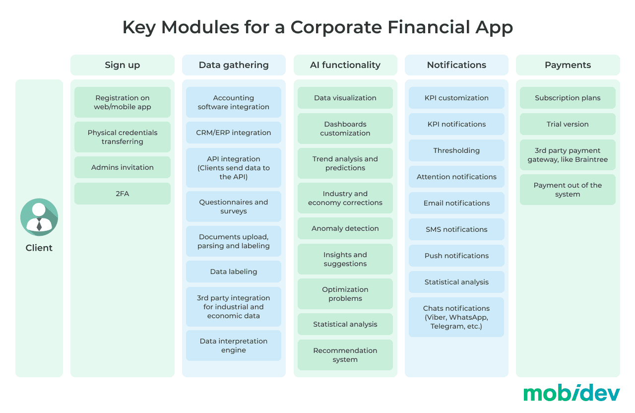 As you can see, the AI-powered corporate financial assistant has far surpassed its “pre-AI” predecessors. Let’s consider some more details of creating such financial apps.