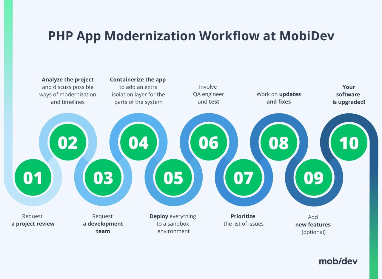Contact usWorkflow for PHP App Modernization at MobiDev