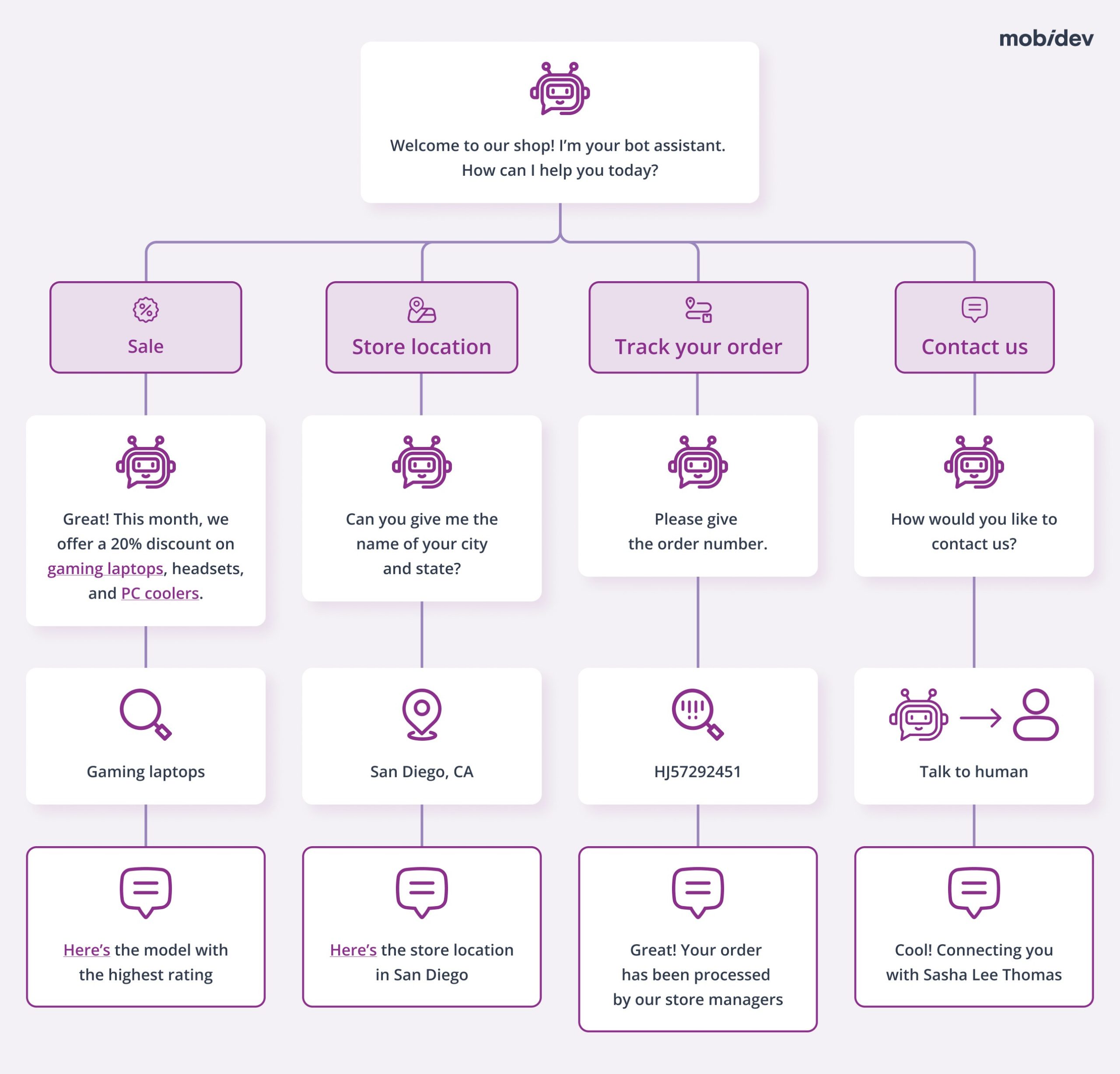 Retail chatbots must be designed to improve customer satisfaction, increase sales, and integrate with your systems to broaden their capabilities. Check out our chatbot development guide for an in-depth look into engineering bots. Now, let’s discuss the best practices that will help you create the bot that helps your customers and aligns with your business objectives.
