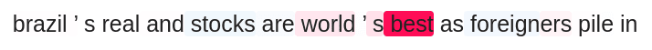 In the pictures below, the words on which the AI algorithm relies in making a decision are highlighted. The redder the shade of the highlight, the more important the word was in making the decision. The more the shade was blue, the more the word tilted the algorithm toward making the opposite decision.