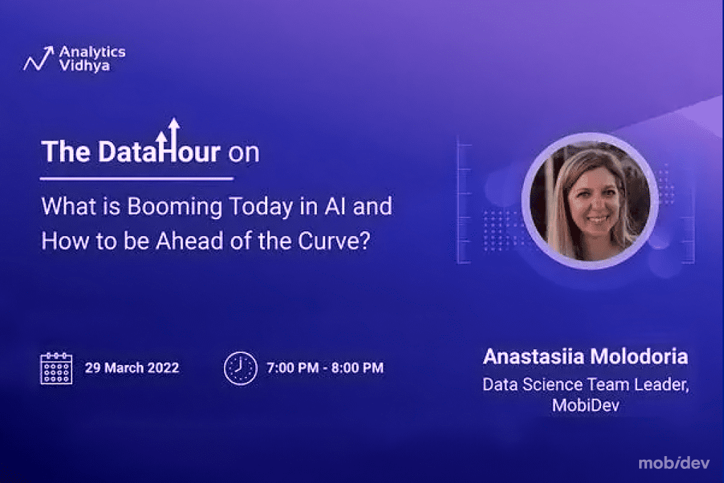 AI is rapidly becoming a part of our lives in different areas and helps businesses become more effective. Our Data Science expert Anastasiia Molodoria will share her vision on the most prospective AI directions in the modern world, and advise on the main steps for AI implementation. Join the free webinar organized by Analytics Vidhya to get up-to-date insights.