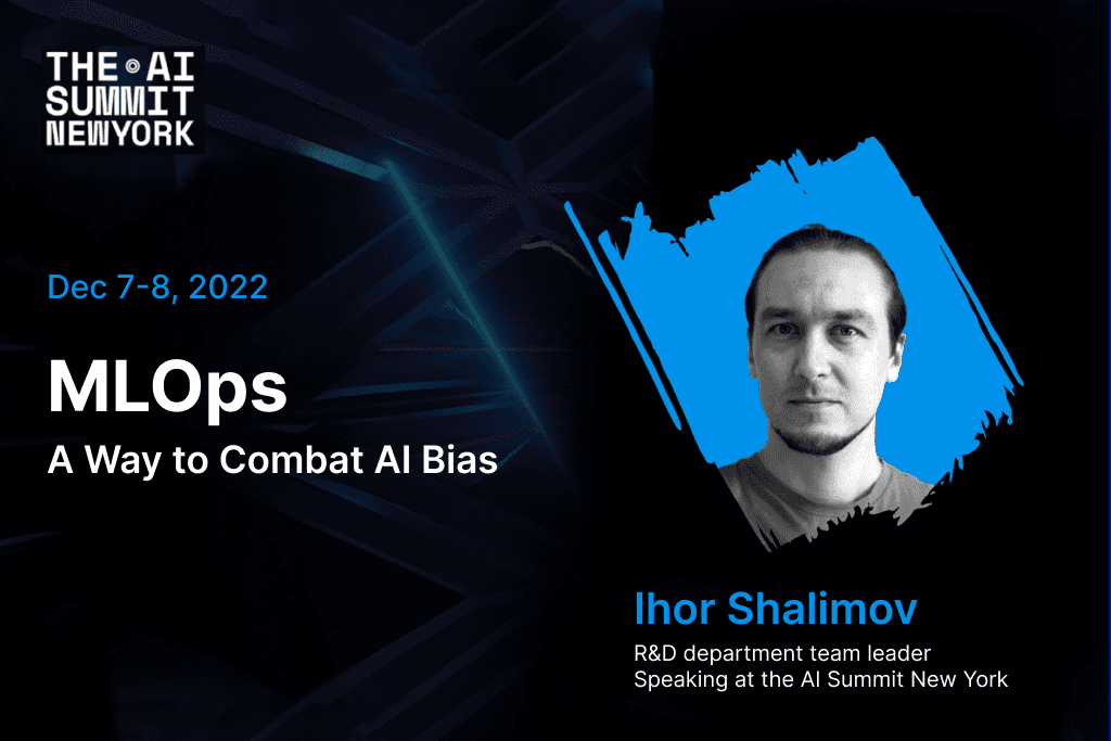 Along with that, Ihor Shalimov will share his vision on the topic “MLOps – A Way to Combat AI Bias” on the AI Summit New York stage