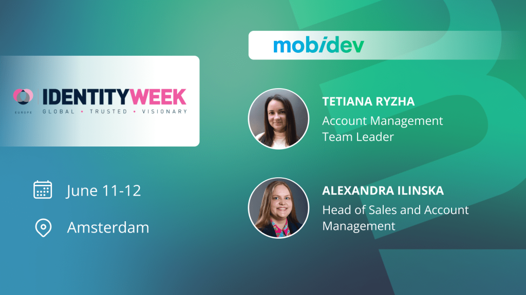 Alexandra Ilinska, Head of Sales and Account Management at MobiDev, and Tetiana Ryzha, Account Management Team Leader at MobiDev, will take part in the world’s largest and most important identity event of this year.
