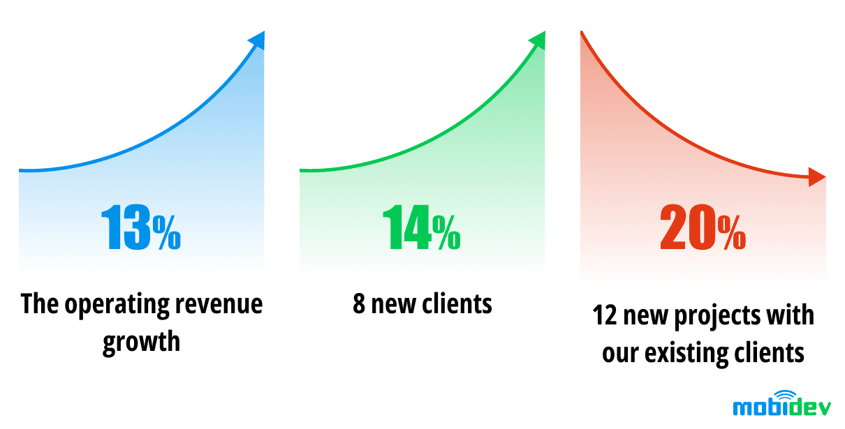 2. During this period we’ve gained 8 new clients, which is a 14% increase compared to the same period last year and started 12 new projects with our existing clients, which is 20% less than last year.