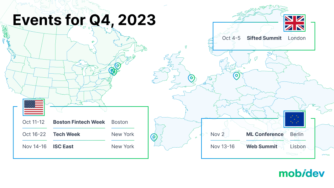 During Q2/Q3 2023, the MobiDev team attended 23 events covering the following locations: