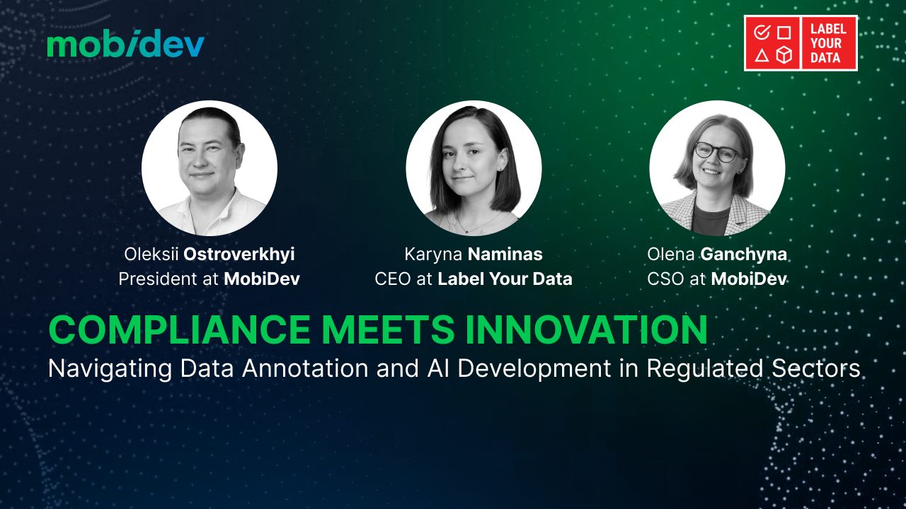 In this webinar, MobiDev experts and an invited guest shared insights into overcoming challenges with data annotation, leveraging synthetic data, and implementing secure AI development practices. Attendees gained actionable strategies to navigate the regulatory landscape while driving innovation.